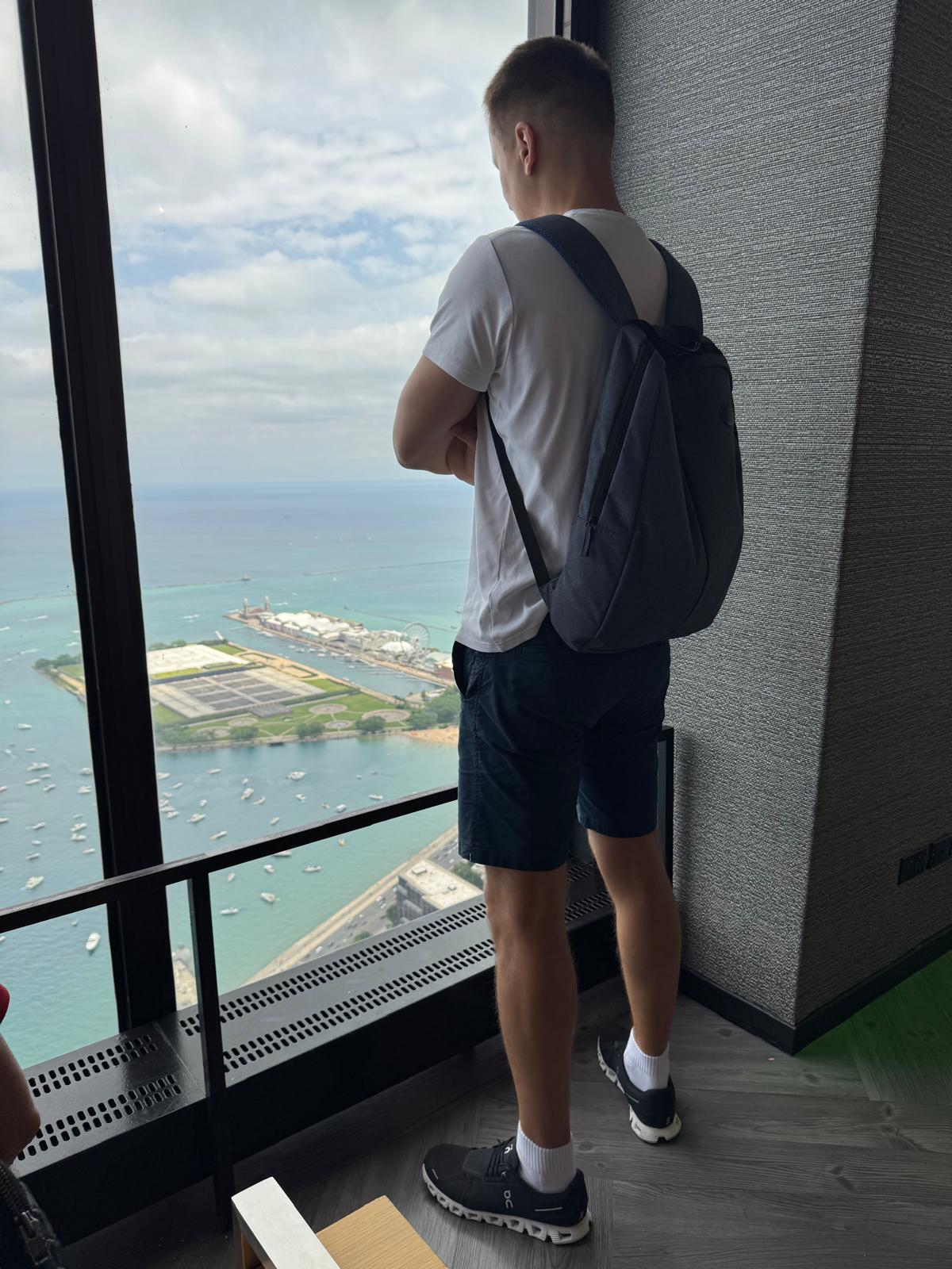 From up there, the view is nothing short of breathtaking — you can see Navy Pier, Willis Tower, and even parts of Wisconsin and Indiana in the distance. We spent a good amount of time simply admiring the city from different angles, taking pictures, and pointing out places we had already explored.